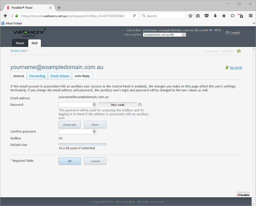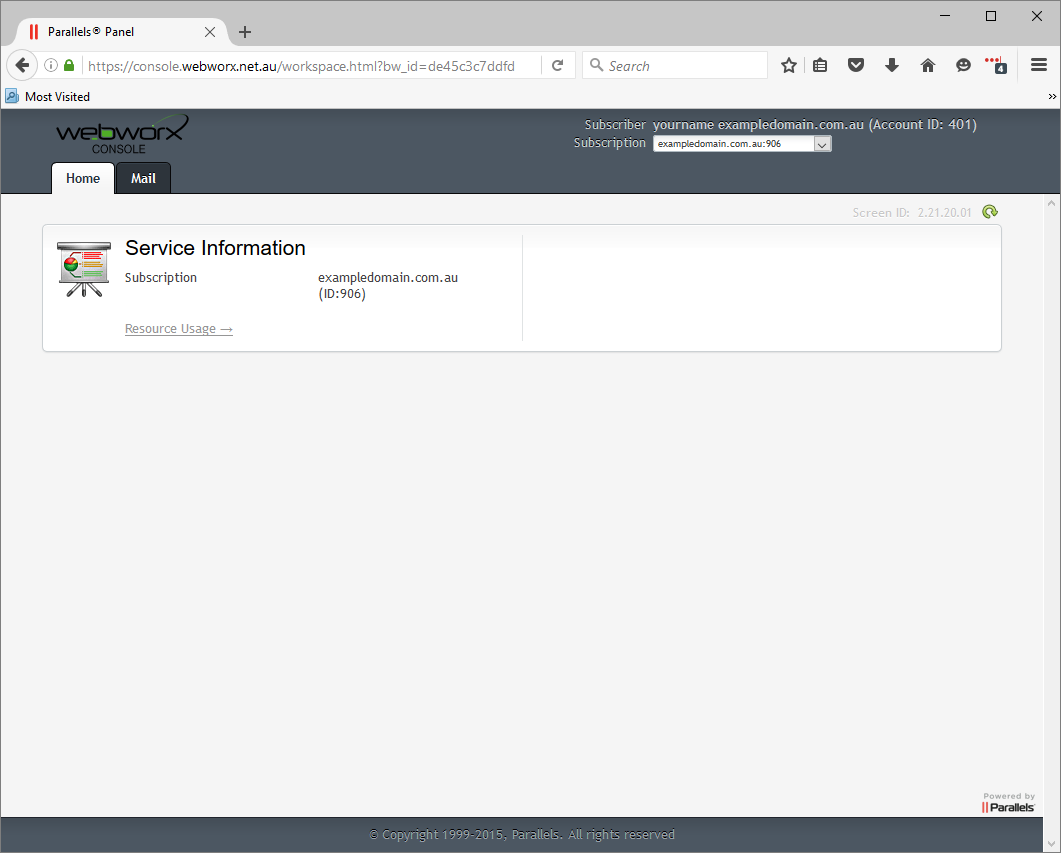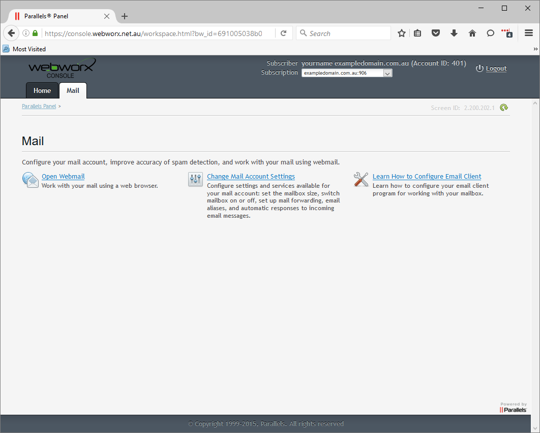 - When in the control panel, you'll be welcomed by a screen similar to that pictured below, go into the Mail tab.