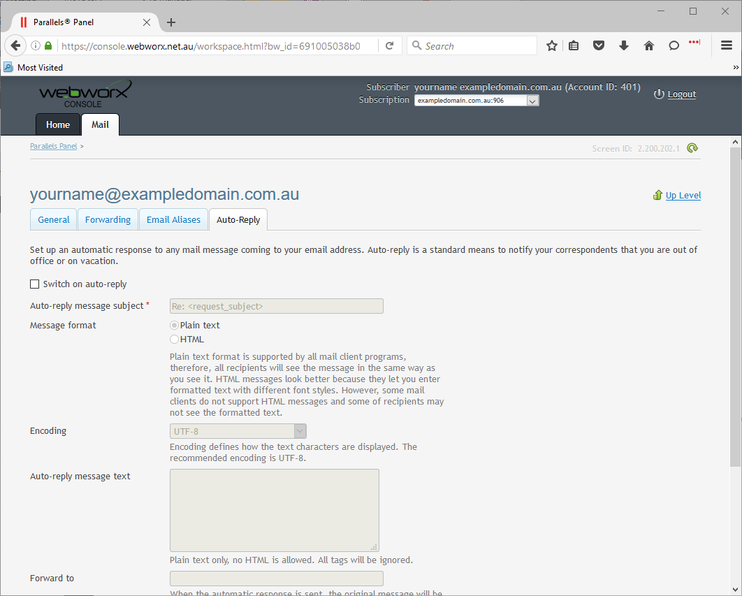 You now should be able to configure your mail accounts Auto-Reply settings.