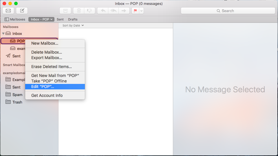 - Right click on the POP mailbox, and click Edit "POP", where POP is your account name. To get this side-view open, click Mailboxes on the top left-hand side.