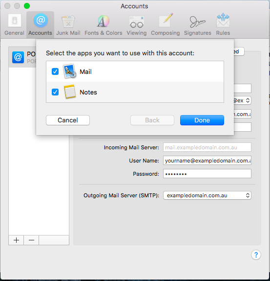 - Select which apps you wish to use with this account and click Done.