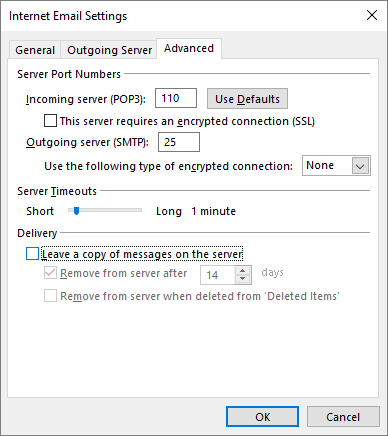 - Open the Advanced tab, and uncheck Leave a copy of messages on the server. When done, click OK, and click Next.