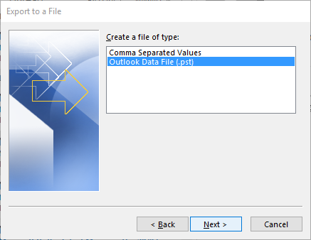 - Select Outlook Data File (.pst), and click Next.