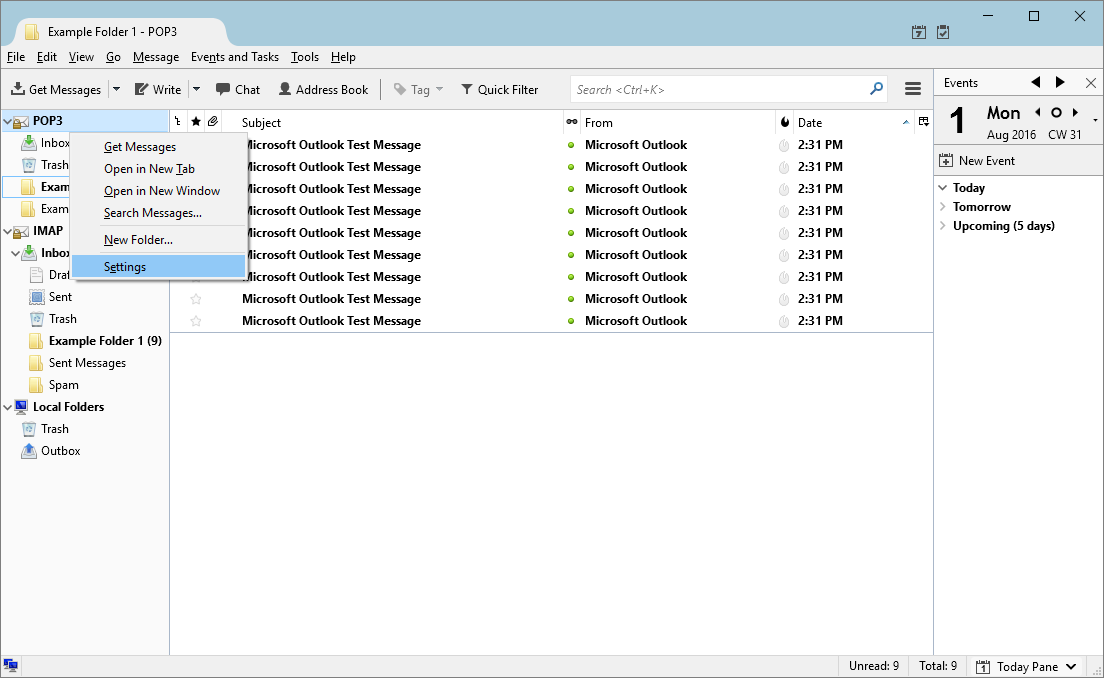 - Once all copied over, you can proceed to delete the POP3 account. Go into Account Settings by right-clicking on the POP3 account and clicking Settings.