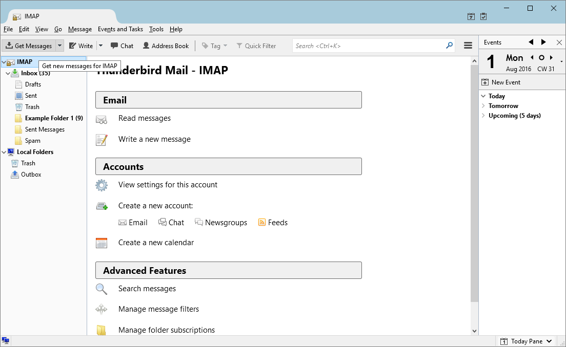 - Open Thunderbird, bringing you to a screen similar to below.