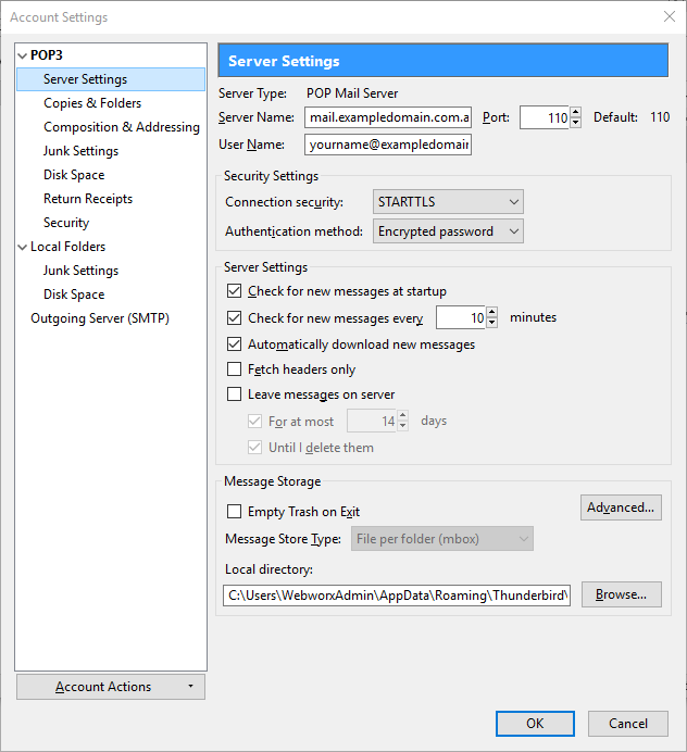 - When in Account Settings, open the Server Settings subheading. Uncheck Leave messages on server and click OK.